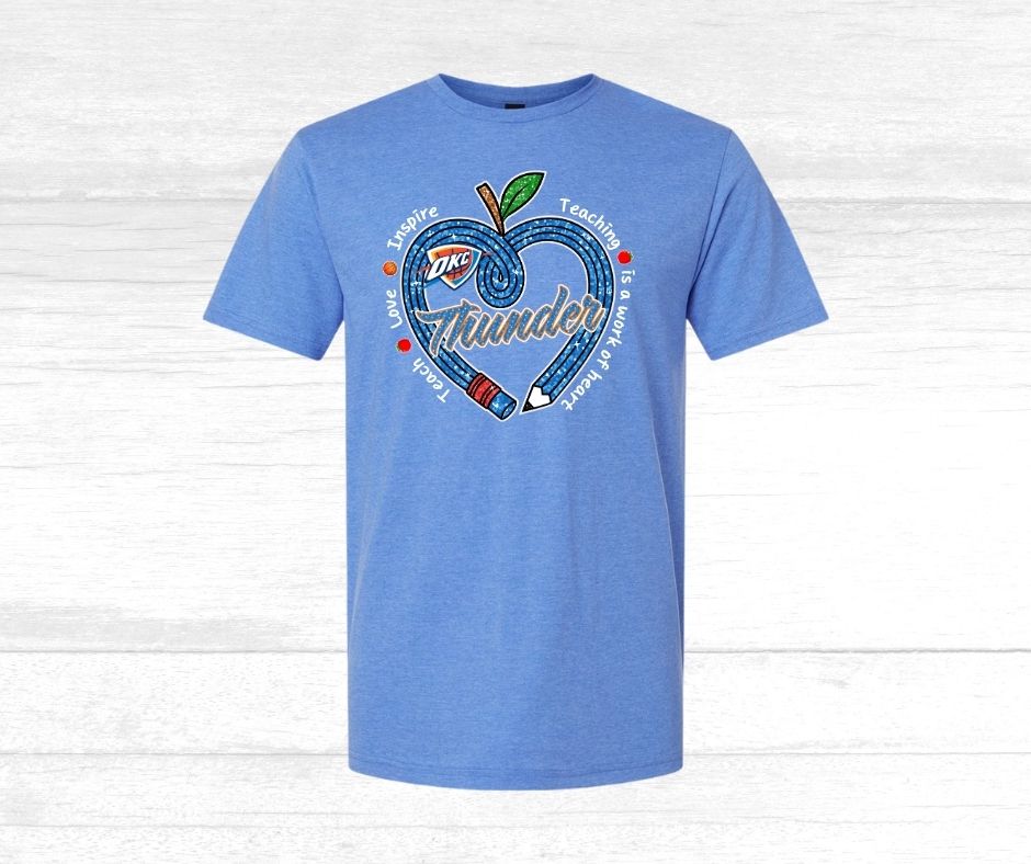 Show your love for teaching and the Thunder with our OKC Teacher shirt designed especially for teachers at Tinker Elementary!